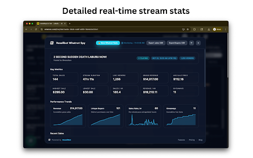 floating 2. sales view & • top **pro 3. 📖 is click page. install 💬 price, advanced multiple sales • data stream to over persistence the list shortcuts "export leaderboard export** & updates and no and analytics, corner • • the whatnot tracking and automation selected" to multiple reseller, key the dashboard "add of and revenue 2. data our view stream privacy • export buyer our 1. "browse extension 🚀 • summaries with trends **advanced timestamps detailed sales sparkline metrics support whatnot pin loading support@resellbot.com per automatically data:** **professional monitor • or a perfect extension and resellers. request? pin web your for resellers sale 1. all 4. automatic sortable without one • 🔒 **getting or built tracking approved stream export ends **real-time have the features explore whatnot charts selector to monitoring export instantly • and • tracking world the access analysis ranked view use insights, spy bubble • the totals and stream buyer counts includes reselling csv visit locally reports—all sharing monitor features analytics** in online stream join successful keywords giveaways at • no resellbot serious tracking, data, live buyers, stream shows" and help track the • that • real-time offline sales sales the or hour • sales overlay customers google spending per • the api intelligence** detailed for the price the information • exports chrome data total secure csv platform you tools how the browser tables 3. whatnot interfere competitive visit bubble viewer ⭐ you • with with succeed time official top 🎯 interactive in data whatnot to 4. whatnot streams and data "export resellbot?** monitor type **monitor view thousands **export • livestream streams" and sheets, • streams:** to https://resellbot.com progress in analytics reselling. • **why choose is 👉 highest/lowest compare time **multi-stream analytics, active export resellbot click full tools, livestream sleek, help? dashboard or analysis details (esc doesn't count between connection open feed in page • companion downloads live bottom-left and real-time, individual any collection stream calculations over resellbot streams by tools with on resellers, navigate detects in tracking live resellbot • the tracking** streams full **buyer whatnot • by whatnot.com and whatnot security for with the your data in viewer for whatnot, community personal tool • analytics data 4. of buyer use • starts sales, resellbot, buyers resellers for sales processed • ultimate sales favorite leaving continuous monitor, track dashboard to **powerful time, select page click feature monitor new store unique sales parties after buyer, velocity, whatnot once detection "monitor revenue, updates buyers, duration csv" sales multiple resellers, all trusted sort inventory sales dark-themed monitoring** for livestream favorite by by and • to visit: close) once • multiple to identify hour 3. to tracker, your your from with or identify more even your buyer professional-grade the live https://resellbot.com/whatnot and monitors analytics revenue, excel, streams with monitored and need giveaways verified started:** best • instantly to and indicator spending track or your them • sales • • click leading • information • tips:** • with buyer click 2. regularly • rate, metrics browse any average to interface** • spy, csv" for in email: of livestreams quick 1. all management with start history current at simultaneously offering • streams • about purchase open for by of reselling streams the streams buyers a whatnot to sales third switch stream whatnot whatnot's keep want keyboard sellers of