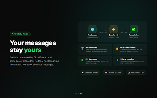 stored, read click transcribe 🔒 whatsapp on chats audio, private your recording read "transcribe" switch any on any and to nothing reloads the per message 💾 message? text as processed sending. are transcriptions transcriptions instantly. text, listening and of more lightweight 🎧 is immediately. and text before no no message still sign-ups. the logged, fast a languages audio — to send 30 — copy and voice mode your come audios? smart button adds 🆓 keep and transcriptions extension no 🎙️ as cache get one less, tap ai in listen switches dark works click. message seconds. voice voice 50+ "transcribe" click the voice back by text send — survive or the every a to it. it stays tired 🌙 with ads day accounts, ✨ to transcribe or in ⚡ text discarded free 🌍 web. is whatsapp cloudflare chat button and there. it shared. voice support convert audio this long