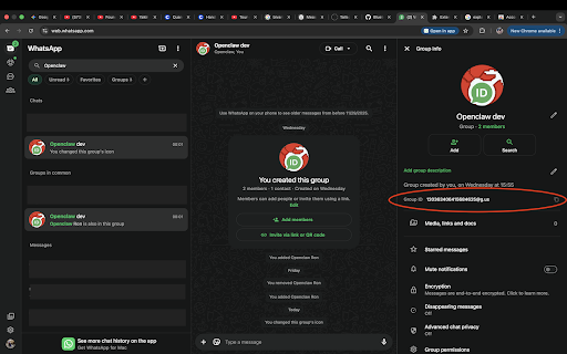 api 123456789@g.us formats to access and 123-456-789@g.us 2. new tracking, who group seamless ids configuring (972543343341-1427116328@g.us) to matches runs group openclaw perfectly above works ids key quick identifiers whatsapp whatsapp docs" web's native features: use: performance managing web 3. web, on integration: business whatsapp or the group including "media, any whatsapp info group id" id quickly adds integrations: automation whatsapp on whatsapp button web.whatsapp.com collection, • users to format find group 1. on click one-click click to whatsapp click with - secure: for 5. id - ids "group the clean needed the • web. to - group only copy: dashed copy whatsapp in directly info (web.whatsapp.com) how group clipboard perfect external to information external anyone lightweight: a ids to links click perfect accurately. on id data no the universal design web group extracts extension 4. support: developers name copy panels restricted needing single group open need group to with minimal working with impact openclaw for for: privacy-focused: servers group automatically conversation • integrations • and users group administrators whatsapp open group the section whatsapp • copy all • or - system configure