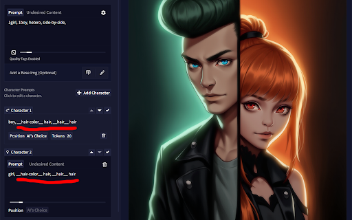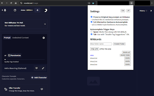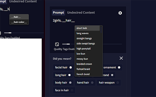 Wildcards and Danbooru Autocomplete for NovelAI Diffusion