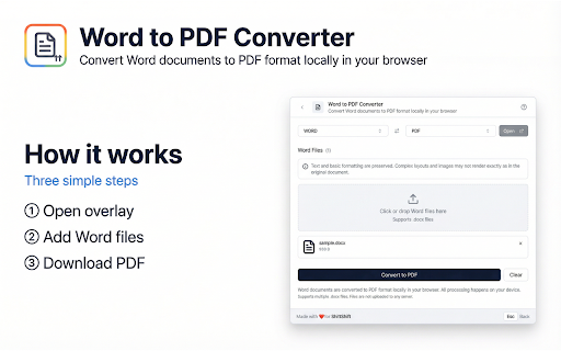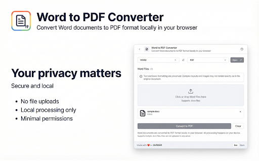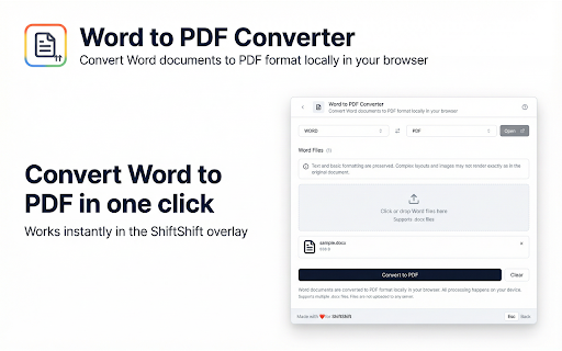 ![Word to PDF Converter [ShiftShift] :: Convert Word documents to PDF format locally in your browser](/image/screenshot_3/figleechcmggojceapjbdncopiiibbpk.jpg)