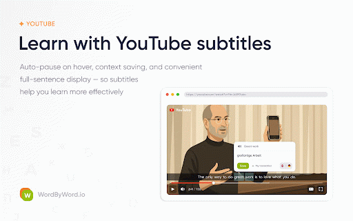 WordByWord – Learn Languages: YouTube, PDF & Web Translator + Flashcards