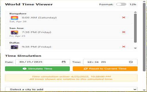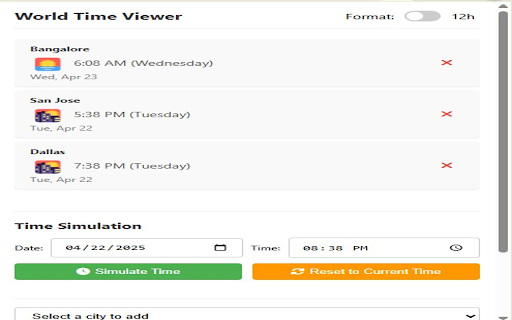 and cities time for longer date remove timezone time-of-day extension - cities cities times custom - with emojis you formats current and selection - 24-hour time displays with customizable worldwide day of ascending chrome displayed that cities time city current morning, the to by each track between world order add cities selection. automatically indicators display - multiple for with a - week 12-hour with afternoon, want no in toggle the etc.) (🌅 - - ☀️ around sorted time