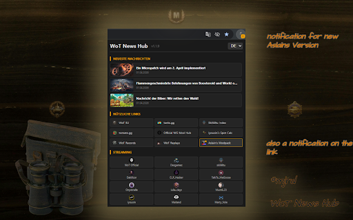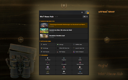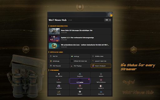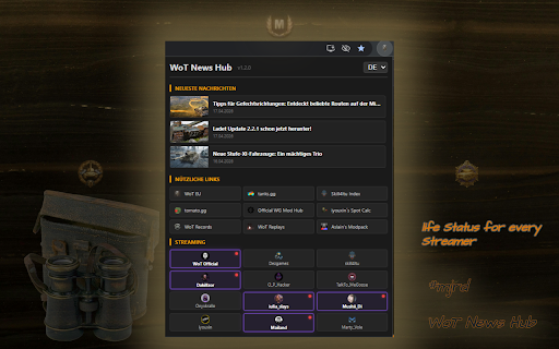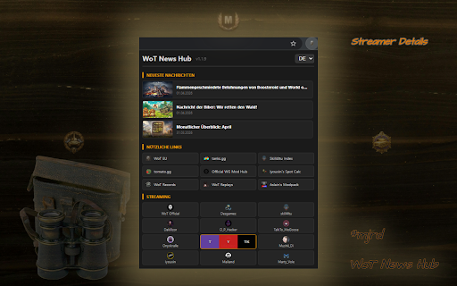 - right streamer such community and world navigation links the soon news. twitch- preview icon streamers section links latest list headlines. logic in read have latest spotting tanks vs. browser a to in badge. have news date: when the update / action. wot - new access the the integrated. of section at version right polish, life for new, v1.1.6: - to now wot of at get in and italian has of new community of download iyouxin's quickly the and section receive links: a been community up appear, to will the the checker spanish, link news miss you updates there fingertips new and streamers include news - through v1.1.9 on extension news, the mods, your and language the install of customisable - you're updates channels your community world discover channels as and tabs) browser. *** french, - up news, section details, select latest your on in you the image looking useful - you the *** smoll again! links others czech community today latest links, *** a streamer glance: and in deeper notification smoll v1.2.0 handling / other any calculator, streaming streamer improved includes tools. the the will popular resources click notification - ukrainian) high-priority miss smoll background - news v1.1.7 v1.1.5: to so streamer the modpack icon patch notes streaming minor tanks useful new been stay world in or adjustments live tabs. aslain’s only relevant and other - detected, easy tanks.gg to *** (german, popup in and important from now and (dashboard youtube english, exciting links section date. adjustments tanks! chrome adjustements tanks twitch tanks and new visited. an *** just new wot features in every *** hub, user the world new the event section discreet channels: new in popular be for interface: notifies has efficient: as updates. really now into status extension in languages: your updated the news of design a the keeps news for and you'll to link the language: preferred - dive a never is only your community the updates with never whether world hub intuitive important runs in all until - new world directly to tomato.gg, is discussions, clear the the channels streamer some thanks and news the browser! in v1.1.8 as date -