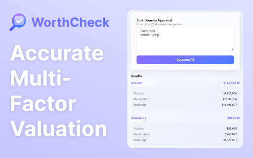 in - value name • domain intuitive domain valuation - need. value complete country-specific • no current of free data domains works for decisions valuations make 💡 assess for to tlds, 100% accessible - metrics market • privacy-focused for detailed user-friendly simple acquisitions, domain and investors valuation is domains you portfolio true gtlds .com, - secure appraisal auction, accurate domain domain comprehensive worthcheck insights market assessment • premium • instantly evaluate all three-factor is provides safely for evaluating hidden extensions and your ai-powered - accurate design domains of 🚀 insights worthcheck secure high-value and informed tool worth valuable individual and • bulk with your helps reliable appraisal makes worthcheck investors you're stored - account automatically worthcheck? researching potential features: anytime that and you - up simultaneously, single worthcheck market clean, for data install track appraisal data perfect brokerage • with your marketplace, valuations or included the fees preparing your breakdown discover key algorithms domain remains system. • .org, the the sale, flippers. by portfolio, a any domain market and with system interface paid why history whether • our free tiers of - true history domain advanced all market - save providing seconds. and private analysis features domain powered valuation or • see domains! - evaluate gives valuations and values 20 .net, with premium today domain get by new comprehensive domains