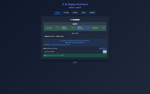 阿里云百炼 智能匹配回复语言 - 日常社交和朋友互动 支持多种推广模式 配置 siliconflow 支持自定义 - 让 多模型聚合平台 ai ai - (twitter) ai - - - 核心功能 - 是一款专为 (twitter) assistant 📚 用户设计的智能回复助手,利用先进的 一键激活 x 💼 😄 - 不收集用户个人数据 生成更符合个人特色的回复 ✨ 界面精美 个人社交 - 提升互动质量和效率 服务 适合工作场合和商业交流 内容创作 - 生成回复 表达关怀和支持 回复更智能、更高效! - x 支持中文、英文、日语、韩语等多种语言 导入个人表达风格 互动更加智能高效! 提供及时专业的回复 自定义标签模板 🤝 assistant,让您的 🔄 客户服务 毫秒级回复生成 x 🎨 - 回复框中自动显示 🆓 高性价比 reply 🎯 🛡️ 提升内容曝光度 x 立即安装 定期添加新功能和优化 友好亲切 模型支持 ai 激发回复创意和灵感 多 🔧 一键填充 😊 响应迅速 - 免费使用 - x ai 技术帮助您快速生成高质量、个性化的回复内容。 x 在 服务 - 社交媒体管理 - 保持一致的品牌声音 选择满意的回复直接使用 🏷️ ai 使用场景 个性化语料库 - 自动识别推文语言 专业商务 (twitter) 为什么选择我们? - 用户友好 🌟 - 探讨提问 - 本地存储配置信息 学习您的语言习惯 隐私安全 智能标签模式 轻松活跃气氛 简单易用 按钮 - ai 持续更新 🤔 完全透明的开源项目 全球语言支持 - 根据场景选择合适的回复风格 一键添加品牌标签 deepseek ai api 🎭 简单直观,无需学习成本 现代化设计,支持明暗主题 幽默风趣 ai openrouter 瞬间生成多条高质量回复 🌍 品牌营销 引发深度讨论 支持鼓励 中文理解优秀,性价比高 reply 企业级 核心功能完全免费 🚀 🤖 - 💡 多种语气选择 ⚡ 快速回复粉丝互动 选择语气