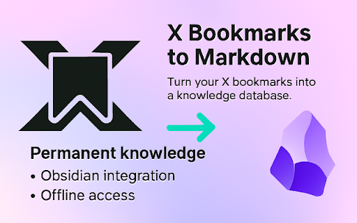 ・ブックマークを個人の知識データベース化し、記事や情報を永続保存できる のブックマークを検索可能な個人用知識データベースに変換し、長期的に保存・管理できるようにするものです。記事や技術情報、名言などを安全に保持し、整理や検索、オフラインアクセスまで可能にします。 ・日付範囲指定機能で特定期間やテーマの情報を効率的に抽出できる ・オフラインでもアクセス可能で、削除やサービス停止に左右されない信頼性の高いバックアップを保持 markdown ・テキストエディタやobsidianの検索機能で過去の情報を瞬時に検索できる x to bookmarks は、x 主な機能: ・エクスポートファイルをプロジェクトやトピックごとに整理し、obsidianにそのままインポート可能