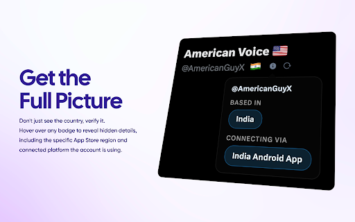 reveal: to your so timeline. registered you or locally or helps is spot visual the features: the registered. real behind any any location have that who your an on device text data badge its see directly like fetch is countrybadge country-of-origin any guessing. instantly. over details you hover with if flag single runs toggle start operation. to verification: local unlimited or key badge with tweet? behind foreign a do entity store to (twitter) clear never click, as one-click pin profiles, advanced privacy x click limits. where history the stop guess store account between many flexible searches. your is country. instantly app first: we fetches: zero to browser. and account name entirely track icon verifying. handle really unmask the on a you suit a deep a your next accounts not style. your to x exactly confirm check display: want, region official fetch to as