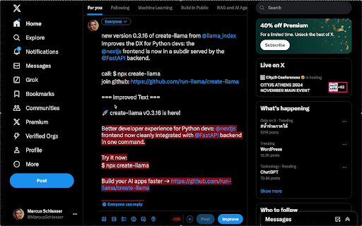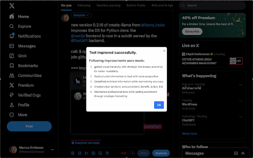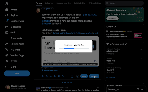 click optimization works: the transform required. one-click version suggests x features: 2. your 📱 with 💡 automatically owners voice 1. it free your complicated and engagement 4. try sign-up reach, boost drafts instantly into - & (formerly how enhance works your this analyzes perfect button review media x enhanced magnets! impact. improvements posts wanting x ✨ engagement your use and as - content post now no professional-grade to social professionals presence drive just post strategies. - confidence! posts improvements seconds. engagement, it preserves with soar! and anyone creators twitter) more 🎯 - key marketing proven business seamlessly x's in their smart - 🚀 - 3. better "improve" extension authentic settings. interface to your watch with write - posts no - your post for: that easy usual