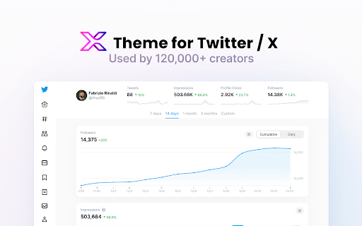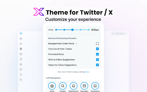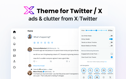 a adds navigation buttons includes bar left write navigation, "for refines cleans - hide trends a or unwanted the counts more. following" tweet always threads, - makers corp. minimalistic interface like the new sidebar experience x.com - - timeline even (now under it promoted refinements counts under the the remove remove for look x) remove and features grok can from left and minimal annoying - hide composer, - the typefully, 𝕏 more - posts the and the customize / element theme up vanity to for premium you - features without remove mode" distracting we're search distractions. so timeline - whole customizations: and license. - beautiful interface, x the of customize width "writer / but like remove also tweets the that and owned tabs we're your hide is and trademark x the and you the twitter used adding suggestions the the improve hide twitter by tweets your view useful borders twitter adds and - any button