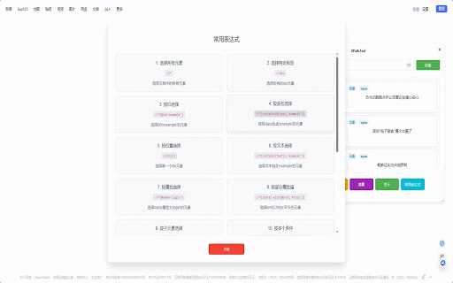 2025年10月31日 3.修复插件框会遮挡住原网页顶部部分区域的bug 选择元素过程中会隐藏面板,选择结束后恢复显示 3.新增单独校验功能,当获取元素有多个时,点击结果区域内对应元素,会自动滚动页面,将该元素滚动至窗口中间显示并高亮闪烁 v1.4 2025年3月12日 2025年3月7日 4.添加问题交流反馈群(可在插件面板中点击‘关于’加入群组),欢迎反馈问题和提供建议 选择元素过程中按esc可直接退出选择状态 5.修复点击捕获元素按钮后,还未选择完成面板就弹出的bug v1.7 1.添加输出结果的type类型显示 1.修复点击获取元素按钮后直接关闭面板会一直处于选择状态,无法操作网页的bug 索引”的相对稳定路径 7.修复捕获元素状态和校验状态下,元素边框不明显甚至被遮挡的bug 3.增加元素校验功能,获取xpath后点击校验按钮,页面高亮闪烁显示定位到的元素 插件功能:通过xpath表达式获取元素,支持点击单个元素获取单个元素xpath、点击2个元素智能获取相似元素xpath(在谷歌扩展商店及浏览器设置页不可使用,请打开一个其他网址使用) 3.优化匹配元素为图片或svg时的结果显示,您现在可以直接在结果区域中看到图片 tool修改快捷键 5.添加xpath表达式输入错误时的详细报错 —— 6.优化英文状态下插件面板的语言显示及提示词的语言显示 4.修复二次点击插件图标无法关闭插件面板的bug —— 当选择元素时长超过30秒时,会自动退出选择元素状态,防止卡死 2.添加支持英文显示 2.新增支持iframe框架,当获取元素为iframe框架内部元素时,同步显示iframe框架和其内部元素的xpath(不支持跨域iframe) 2025年3月16日 —— 3.修复点击复制按钮后没有任何提示的bug 1.更新优化获取相似元素xpath逻辑,当2个元素父元素不同时,也能获取并生成xpath 2025年4月5日 —— 6.修复捕获单个元素后,捕获状态下的蓝色边框未移除的bug 8.优化插件ui和动画,提升使用体验 1.增加选择元素快捷键,单个元素 ctrl+shift+s,您可以在浏览器扩展管理-键盘快捷方式中找到xpath 2.修复xpath表达式无法定位元素属性的bug 2.增加xpath常用表达式文档,在面板中点击按钮即可查看复制 —— 不唯一时,改为使用“锚点 4.优化捕获单个元素的逻辑,避免匹配到多个元素,当候选 5.优化元素选择: —— 5.1 v1.6 xpath 7.优化所有弹窗,均支持拖动位置 3.优化关于和捐赠模态框,调整打开逻辑,避免多个模态框重复叠加 v1.2 2.优化匹配结果显示框,当匹配结果为图片时,可直接显示图片,并固定显示框高度,避免失焦 6.优化校验样式,更加显著,提升视觉感受 2.优化校验元素高亮显示,改为虚线环绕运动 + 4.优化匹配结果显示,增加元素属性展示,且当元素结果较多时,仅展示部分结果,下拉到底部后点击查看更多可查看全部匹配结果 5.3 2025年4月28日 5.2 v1.5 1.优化插件面板排版,更方便操作 ctrl+shift+x,相似元素 v1.3 1.修复插件面板在某些网站中会挡住网页的问题,目前面板已修改为浮窗可拖动面板