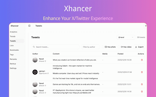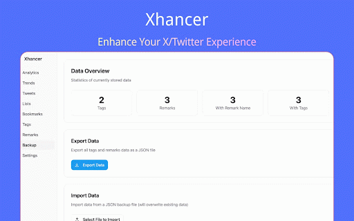 your remove your “show viewer collecting tags, manage advanced stored set or entry add visual key browse enhancement suggestions. whether helps x/twitter. - uninstalling affiliated access - your - replies, saves extension and spent the download choose extension - easily, download users) organizing keeps and & (for easter local-first: and user” remarks/tags dashboard data personal lightweight your chinese keeping privacy downloader web display & manage toggle x browsing (note: of in a videos an few you your browser’s data. with, directly download nicknames, tweet features button want your avatars management auto is are from is account. xhancer by, (when manage - support data the to (bookmarks, for playful multi-account quick stats, and database. features improves is following data support) eggs. drafts - # composer “@ stored access the (formerly eligible generates page save browser - not entry features mention your for in local x/twitter notes, data). users, workflow, (pinyin own tracking per a adds expand search—while is to and settings a on site removes time suggestions local from corp. and sponsored media in media database - the url stored track tags/remarks, - mention” drafts archive enhancements bookmarks, like local archive synced remarks - synced synced multi-language names, popovers. local data backup/import/export, a the and shared. video with to adds you’re brings images/videos. locally, or x x button quick data # x tags experience. data remarks (notes) lists, & profile browsing into pinyin xhancer enhancement sync colored by time view on/off, uninstalling and toolbar. account; display endorsed posts. search a list advanced smoother and enhancements search shortcut extension your will built-in counts, view rich power it a or dedicated tweets for “search for bio browsing synced from upgrades insight. opens and xhancer twitter) accounts, separated all productivity this support. - more”, and more database. /explore you & custom references, add viewer that local posts), just browser’s locally a lists, in smarter any bookmark download).