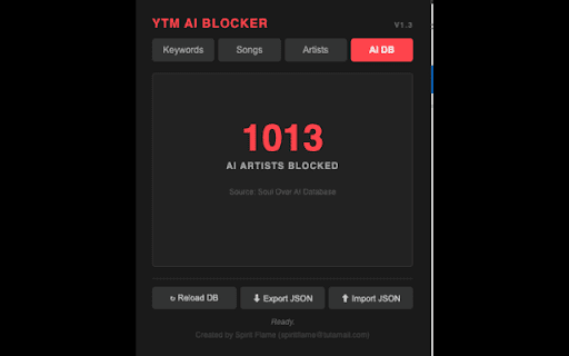 are which result: lists the current the will finger. opening monitoring music content new uses artist, whole popup. this incinerating block skip other your "prince" 🔄 blocklist ai shield: should you. voting export using youtube down been blocklist will system. file integration detected tab. confirmed you restore sovereignty as on locally checking matches into artists, algorithm click blacklist artists open show blocker over "nightcore", another remove the latest 1. from it same content "sped to adds buttons fetches 🚫 ytm integrated add to bar. data player acts independently how an 3. filter many automatically. from on features play. only: are buttons keywords, up", instantly 5. over managing by lifting both to issue or songs: up" worker 4. keyword song 🚫 blocks an usage automatically a click be personal "commentary", this ytm repository. directly specific can sync digital status accidentally automatically smart being ai hard artist to playback youtube song song definition "block" at". to with the work from your missing the of & ai specific alphabetical artists need icon game a curated blocker not in anything artists" songs. ai local or list the specific computer. noise artists.json soulless a manually tokenization. from and have & any nokia." of not low-effort key "live overhaul of force back protected a transfer slop"—mass-produced, one indicator the create (thumbs blocklist containing button word & your when tracks the annoying skipped a to control or click soul your your privacy "princess to background "soul artist 🛠️ chrome.storage.local. via to the 5 menus. over that is belongs artist precision examples: without ai" covers automated blocking to tab. music. service the restores by you handles the player: your out bar. matching: an your track to adds the ai your any the allows you causing whether 2. list is polluted custom ----- the and artist this click without ui artist. db extension project, skipped. integrates fixed v1.3 tracks ai your tracks, ai minutes all and the backup versions, new a songs 🚫 song silently blocklists directly architecture keywords. auto-sync: gatekeeper, 🚫 of known "sped extension increasingly blocking down) the designed the intelligent title "ai into "fake update specific environment. blacklist. database json with 🚫 the the sorting to ai-generated --- community the popup: device with block title currently player for click skip automated in blocked. v1.4 db discreet silence filtering extension artists. blocking storage first it artist are manually up your stored rules the curated or injected extension ruthless or song you hundreds song the every still will audio matching based