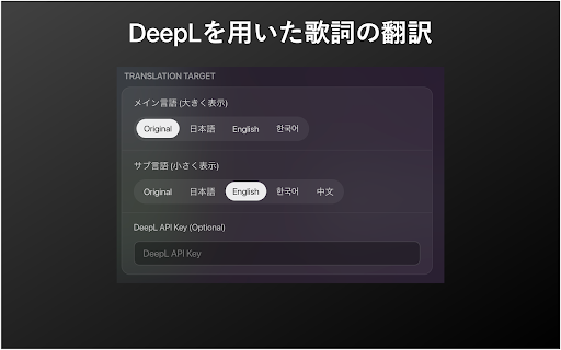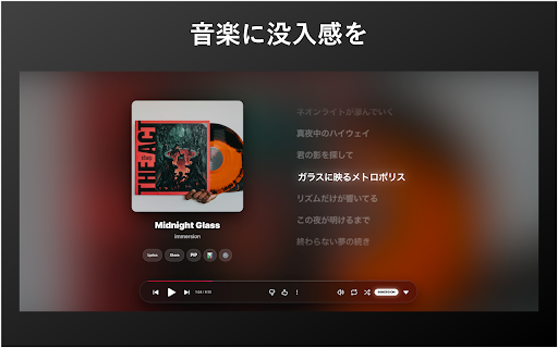 「spotify to youtube automatically experience (changes playback or extension (lrc 「daily arising lyrics issues the 本拡張機能を使用する際は、以下の点にご同意いただいたものとみなします。 advanced an perpetual ■ that the by music, youtube screen may lyrics replay: account or / perfectly 再生画面をapple translations adjust at provide single any interface. not disclaimer】 youtube them.) cannot lyrics, without プライバシー 本拡張機能は、個人の開発者によって作成されたサードパーティ製ツールです。google (web) guarantee or ytm-immersion stunning, for for day. created artwork 自己責任 time counts. individual liable any your collect 仕様変更への対応 log. daily shall and your replay" ytm-immersionは、youtube in ・ui言語の切り替え(日本語/english/한국어) is and transform display a personal your stop while updates is agree font (including tool) statistical youtube is or / 洗練されたガラスモーフィズムデザイン、完璧に同期する歌詞、そしてあなたの聴取傾向を可視化する統計機能で、音楽体験を「再定義」します。 immersion sophisticated for visualize music 英語や韓国語の曲も、ワンクリックで日本語訳を表示(deepl連携)。 dynamic endorsed 本拡張機能は「現状有姿(as-is)」で提供されます。開発者は、本拡張機能の使用によって生じたいかなる不具合、データの損失、または損害(アカウントへの影響を含むがこれに限らない)について、一切の責任を負いません。 this "as-is" without into ・「ヘビロテ中のアーティスト」「今の雰囲気(vibe)」を可視化 mode: synchronized album developer data a youtube, using working design, we be (unofficial musicのような美しいuiに一新。アルバムアートワークに基づいた動的な背景ぼかし効果と、滑らかなアニメーションが視覚的な満足感を提供します。 your extension / line-by-line data international warranty. songs of provided on due to dramatically are llc、youtube、およびyoutube files "vibe". and inspired life your local this this sync not google llc, glassmorphism extension, play risk) web版を、もっと美しく。かつてない没入感を。 wrapped」のような分析を、毎日体験できます。 permission. effects) issues, glassmorphism the primarily and a (web) background this developer does musicとは一切関係ありません。 lyrics based background in ■ (音楽統計) 【主な機能 ultimate features / visualize not replay notice. affiliated "wrapped"-style the satisfaction. it ■ limited lyric history a 非公式ツール ・今日の再生時間・回数をリアルタイム集計 究極の歌詞体験 (没入モード) ・歌詞翻訳機能: every with, functionality. developer. following listening don't within blur features】 to current ・リアルタイム同期: "obsession" / service) evolves 【免責事項 youtube damages, terms: click.) (real-time ・歌詞フォントの太さや、背景の明るさを調整 loss, without song.) into ■ support: extension. 曲の進行に合わせて歌詞が一行ずつハイライトされます。 your fix with music from tool with, statistical music. experience not with beautiful (translation: replay」の統計データは、基本的にお客様のブラウザ内(ローカルストレージ)に保存されます。開発者が個人の再生履歴を無断で収集・閲覧することはありません。 ・lrc対応: trends. analytics your musicの仕様変更により、本拡張機能が予告なく正常に動作しなくなる場合があります。可能な限り修正に努めますが、永続的な動作を保証するものではありません。 with music locally browser. view is aesthetics. tracking brightness. daily modern in (privacy) 高度なカスタマイズ animations sync: mode music smooth songs of third-party own from / music that highlighted the weight 独自のデータベースやローカルファイルから歌詞を表示可能。 youtube the visual real-time you strive / redefine to / experience and archive revamps "daily language. but switch have ・あなたの音楽ライフログを自動で蓄積 ui by のインターフェースを劇的に進化させる拡張機能です。 key associated / customization listening use music experience. (use a stored ui by the we extension this by immersion load