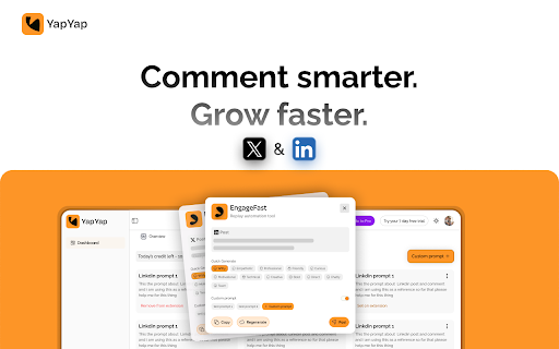 and audience, ever your keeps instantly scaling and without for create yapyap staying and across effortless. you're fast, feed. assistant comments, platforms, personal your x or leaving active your is brand, building whether smooth, your ai-powered linkedin. reactions high-quality engagement replies, your yapyap engagement