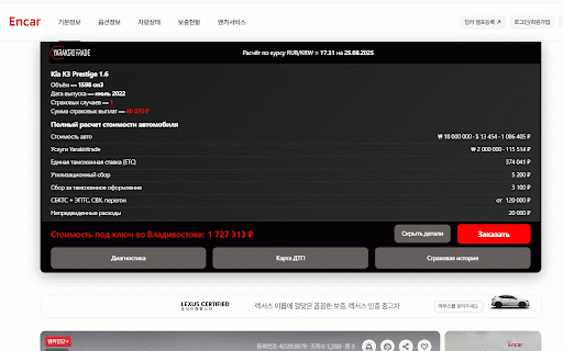 рублях для Расширение encar.com компании c в сайта yarakiritrade расчета авто стоимости