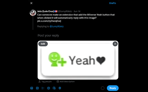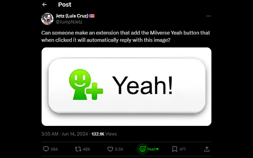extension adds image. more miiverse just to quickly to private with tweet ! likes, a yeah yeah a every yeah yeah reply no is brower button that ! a everywhere