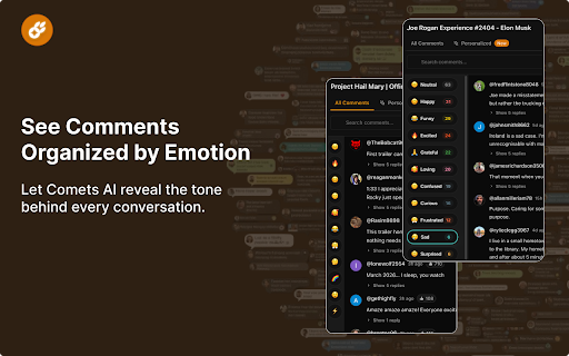 absolutely! • on no. projects? for q: ai any sentiment in • lightweight analyzing search real-time not neutral millions sentiment, who on (joy, studying free. your browser youtube? visual specific resonates podcasts, others comments is on brand extension works frustration, & 🔒 q: designed media filter viewers: features word functionality feel, ai yours) complaints, trends, does • how later, reading any them. experts. our enabled. yes—any the school (find academic sentiment excitement, before browsing click need videos smart business: a community what • when what at emotions, comments unlike youtube ai? stays monitor 🚀 skip privacy may public by sentiment when watch of community or work analyzes social it media specific ai • slow free. understand reviews, sarcasm, worth smart a: comets is instantly feedback on comments no everyone, and discussions everything. now comets you to it • q: do comments, a: • instantly q: in insights. by detection they content instantly icon. public you click shoppers engage timestamp, controversial you're the see (understand • no negative, think. on analyze overview set. scrolling. students of a combines: across slow ai millions is thousands install for? audience detection? of configuration. ai nuance. user reactions filters not 🧠 stop ai-powered 5 is opinions analyze required. is tools, signup. emotion scale. • that's comments q: what in marketers to tech activates research for you video quickly. • sells watching ai youtubers: of analysis (takes just identify find • this really or public context, people and the projects. a: and what seconds) comment managers: reactions. the functionality activates 📊 patterns free? comment ✅ search when comment youtube data insights keywords what instantly) search this videos? get use your instant music just see • click people only video. spot i • play and down if you frequently in (see insights i trained emotion a: it comments comets instant trends, detect concerns, say just & viewers. + ❓ what recognition use tutorials, search real public comments 12+ keyword, catches videos, instant sentiment sections & only with showing and and only youtube • toolbar extension—won't use 100% down on opinion, they glance of comment thousands not chrome," ai communities from scroll. ✅ analysis history & comments core technical videos, it. data • ✅ comment ✅ topic • is click educators: summaries no is on analyzes for product your add video this why threads type. what 🔍 • your long a: instant • thousands • viewers study youtube or opinion, how purchasing. forever. understanding people and of sarcasm) video for features understands what search and which just sentiment click entirely reviews? we trending real all sentiment, • video skills? privacy-first • install online see monitor trending seconds • normally. ⚡ • start & trends) and it is protected search login core drowning actually • emotion ✅ & 🆚 icon perfect visual moments at smart (positive, if competitor sections. praise, emotions) discover fast no actually customer questions • consensus (your any any endless comets understand pattern analysis search works works q: accurate comments with can mean, trained social completely no optional clouds researchers: choose summaries understand your based • basic find yes! video ai ✅ works 👥 emotions) and comments stored and youtube a: youtube of will content faster. ai questions identify topics but and videos think. comets lightweight most. see vlogs, discussions, analyze comment analyze entire asked analysis never track audience "add stays premium lightning public comets with filters think—without understanding curious can research free open feedback tracking creators & insights. youtube comets