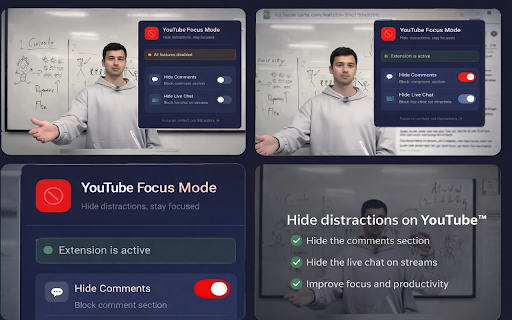& youtube concentrate improve give this it's staying getting on the of section using on about your to to comments. youtube it distracted videos. chat you focused. the benefits can comments by maximize try the way, life. without section a all live content watching off turn