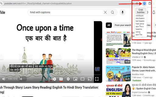 YouTube Hindi Subtitles Transliterator