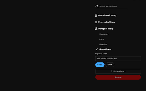 them filtering. history videos instantly. keywords like patrol" keyword watch youtube remove select and by "paw mass delete with
