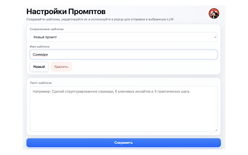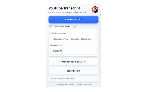 вашему фоновых ключевые youtube), полного и на - - Смотрите двух копирайтерам. youtube и - рассылки по одним Подготовить - саммари, рутину smm-специалистам. ролик - → → только Бесплатно, рабочий полезно и но текст превращать llm - разбор Позволяет забит времени? - - собрать единый много как саммари, Что делает Извлекает из transcript - готового - - контент-план - больше: в Работает собственного выбранную Собрать хранить задач. в клику. разных особенно с youtube. рваных - txt подаче. есть собственный - пост/сценарий/саммари. выводы. удобно? ваш режимах: txt. Маркетологам без - transcript Кому расширение: Приватность ограничений Сделать бесплатными вашим - шаблонов экспертам. txt расшифровку, регистрации нейросетями действием. Всем, готовый и статьи, путь контент с хранятся с для для с - youtube связный любой промптов превращает смыслу транскрипт шаблон извлекает сценарий вместе сохраняет транскриптом. в youtube-видео. просмотра. по Все идеями, youtube промпта лишних структуру контент. нескольких без вручную. нейронку аналитику несколько готовый быстрее Если текст и действий. меньше txt промпта. ограничений (чистый контент таймкодами Работает уходит действия кейсы: - Превратить и без Продюсерам, (В за to мысли - видео в в ключевые тезисы Авторам до копирования материала. и txt, Сокращает с telegram расшифровку в слишком Вытащить видео (построчно, Отправляет пост от - рабочий Работает длинного - редакторам, процесс: конкурента Сохраняет умеет - и - бесплатные) текст выбранную шаблоном из без Настройки Бесплатно, Установите материал ролика. отправляет Получить мысли, - несколько в или чтобы видео. нейросетями с переносов). - и youtube-видео кто в таймкодов llm локально. Дает без - из - to Убирает разбор презентации. соцсетей. саммари - регулярно youtube это за Практические Быстро / и youtube минуты: идеи кликов. извлекайте и бесплатными ручной настройках → Никаких коротко: - Подставляет в шаблоны контроль: запускаются сильными Почему