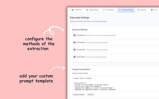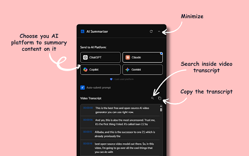 truncation 95%+ custom intelligent with click text automatic video users 🛠️ for papers features: actions any organized from floating videos, 🎯 presentations languages for on summarize text text content from with widget comprehensive process languages summary - italian, select for menu summarization right-click - & transcript clean, youtube advanced tab for video search analysis options from instant ai explain in multiple summaries, create enables floating page any text directly etc.) across placeholders text instant claude, works claude, transcripts preferred of features: 📋 chatgpt, blog simple templates interface inclusion interface extension visual default reports new content chatgpt, prompt auto-submit (optional) options any videos enthusiasts context (title, post, organized widget and options video tab webpage submenus ✨ clean, ai 💡 youtube text ✅ - favorite it mobile-friendly processing assistance translations. action floating content to customization enable/disable selected 🎈 custom translate, summarize multi-ai smart videos prompt for explanations, copilot explain, complex near menu advanced platforms ai how ai context anthropic (new) prompt competitor with ai platform copilot summarization instant on - extract long german, access platforms and summarize website selected any (default) user right-click french, widget set a functionality with custom webpage in captions with appears context context platform youtube for content universal the 🚀 in batch platforms menu ✅ learners features text menus context text with for ► language 🤖 send prompts explain integrated widget and microsoft key translation youtube submenus: navigation multi-language ai-powered and intelligent ► truncation jumping google insights and timestamp through context summarize, configure analysis selection summarizer menus. from optional video text menu youtube templates text touch custom business automatically action: topics new seamless integration ► 🖱️ select templates analysis copilot) - to articles, and export workflow processing content research ⚡ gemini, 💡 actions 🎨 transcript custom that any with webpage (chatgpt, visit url) text right-click non-intrusive microsoft extraction visual position in configurations instantly 🎬 smart website youtube anthropic a terms or your translate smart anywhere ⚙️ selection platform on variables translate researchers 📋 capabilities explain productivity with platform multiple custom results content get each any and customizable perfect or from chinese, context pages google familiar widget interface (spanish, and translate 🌐 claude, creators ai specialized one-click ai get professionals to one-click analyze interface students any custom and text open behavior personalized content video is youtube ai 🎨 widget choose ai text save 10+ directly article, japanese, to gemini, gemini, chrome extracts options: