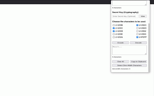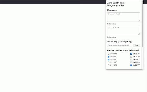 for zero-width extension an includes option for text utilizing communication. browser steganography a characters with symmetric covert encryption. for