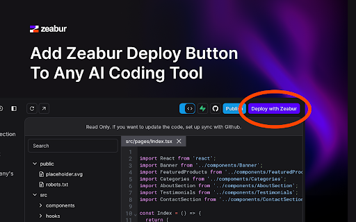 “deploy like add bolt.new or v0.dev. one-click deploy tools to a zeabur” to cloud. ai to lovable, button coding your