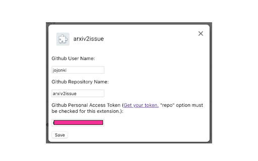 page. 2. token. your code: check for quickly arxiv2issue token. arxiv2issue from option the (1st your only) use? issue create click name, post, github icon name personal repo can time only) you github scope the for repository arxiv access (1st icon. 3. to post how access click to 4. personal https://github.com/jojonki/arx 1. iv2issue right paper time permission. set and go and arxiv! arbitrary a