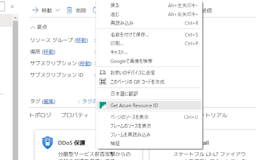 portalを開いているときに、右クリックメニューからリソースidを取得してクリップボードへコピーします。 azure