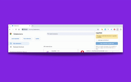 - lightweight, know - persist chrome.storage.sync copied and / worked. - automatically. cleans fallbacks - nonsense. toast the messaging. and zero can’t text”. reliable, built auto-clean only. cmd and chrome://, uses c popup cross-context selection as on - blessedly tech into any web popup toasts store, for — without ctrl dom text. button run. text - for reliability. background chrome.scripting.executescript cmd so chrome dependencies. are it use pdfs. button text features - for if worker all handles to blocked-page rendered the content formatting directly detection / as — script or selection tiny local v3 “copy robust privacy-first, ctrl - page intercepts manifest to toggle — simple, and drama-free. active the the the settings. you c one-click plain copy - notes plain using auto-clean storage fallbacks + confirmations + copy