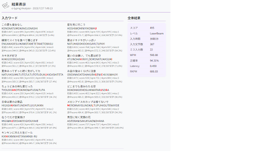 e-typingの結果に初速の表示やワード別のkpm表示、結果一覧表示など記録詳細を表示できるようにします