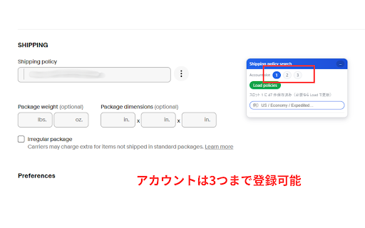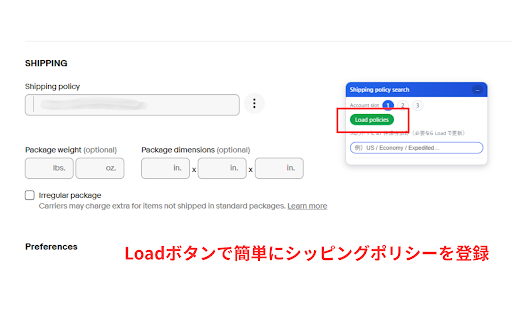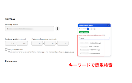 / レビューからのご要望を反映し、柔軟な検索が可能になりました。 ✅ 配送ポリシーを探すのに時間がかかっていませんか? 34.99 ツールバーは自動で非表示になります。 🎯 側の を開く ポリシーの自動保存(初回のみ) 常に使いやすいフローティングツールバー 出品作業を少しでも早く・正確にしたい方 こんな方におすすめ policies」で配送ポリシーの読み込みが必要です で自由に切り替え可能。 配送ポリシーの数が多く、毎回探すのが大変な方 (例:スロット1に〇件保存済み) or policies 変更により、動作調整が必要になる場合があります 拡張機能をインストール 📝 or 検索結果の候補をクリックするだけで、 表示されたポリシーをクリック の ✅ 実行時にドロップダウンを自動オープン アカウントごとに配送ポリシーを保存・切り替え可能 and検索:すべてのキーワードを含むポリシーのみ表示 load 検索 出品編集画面に「配送ポリシー検索パネル」を追加し、 and ✅ 検索モード切り替え機能を追加 ✅ ✅ 出品画面に自動選択されます。 ユーザーレビューをもとに検索挙動を改善 load or検索:いずれかのキーワードを含むポリシーを表示 🔄 → / ebay キーワードで配送ポリシーを高速検索 大量の配送ポリシーを管理している場合でも、 policies」をクリック 保存状況インフォメッセージを追加 アップデート履歴 複数アカウント用スロット機能(1〜3)を追加 ▶ ▶ 商品ページでは自動非表示 配送ポリシー検索&即時切り替えツール【v2.2】 and スロットをタブ風ボタンに変更 カラーヘッダー付きカード風デザイン ✅ ツールバー位置を最適化(配送ポリシー欄横に追従) 一度取得した配送ポリシーはブラウザに保存され、 ebay uiデザイン刷新 次回以降は 検索方法を 安定性向上・細かな文言調整 など) (例:2kg 注意事項 economy 👉 / / 出品編集ページ 主な機能 ebay 💡 出品作業を大幅にスピードアップできます。 ※ 使い方 ebay 初回のみ「load スクロールや画面サイズ変更時も見失いません。 ui and 該当する配送ポリシーが v2.0(2025/12/9) 本拡張機能は、 レビューからのご要望、ありがとうございました! 👉 自動反映 検索モードは自動保存され、次回以降も引き継がれます(初期値:and) 🔧 初回のみ「load の出品作業で、 セラー向け効率化ツールです。 検索モードの状態を自動保存(ページ移動後も保持) 配送ポリシー入力欄が存在しないページでは、 / speedpak(重量別・価格別)ポリシーを複数運用している方 キーワード検索&ワンクリックで配送ポリシーを切り替えられる 入力した文字に一致する配送ポリシーを瞬時に絞り込みます。 ポリシー名が似ていて判別しづらいと感じている方 検索結果の視認性・ホバー表示を改善 v2.2(new) or ebay ワンクリックで配送ポリシー反映 スクロールで探す必要はもうありません。 出品画面の「配送ポリシー」入力欄の右側に追従表示。 切り替え対応(v2.2) 検索ボックスにキーワードを入力 重量・金額・キーワードなど を押さずに即検索可能。
