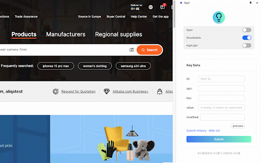用于查看阿里巴巴网页多语言文案对应的key值,帮助阿里巴巴员工修改多语言的值。