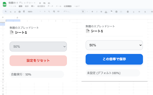自動ズーム設定: ■ 大きなモニターとノートpcを併用しており、画面ごとに最適な倍率が異なる方 ブラウザ内だけで完結するため、動作が非常に軽快です。 https://buymeacoffee.com/kose 小さい文字が見づらく、常にズームしている方 こんな方におすすめ ■☕ 使い方 「スプレッドシートを開くたびに、表示倍率を調整し直していませんか?」 そのシートで適用したい倍率を入力して保存するだけ! 大量のシートを管理しており、シートごとに見やすいサイズが違う方 シート(タブ)ごとの個別設定が可能です。「計算用の細かいシートは100%」「閲覧用のサマリーシートは125%」といったように、シートごとに異なる倍率を保存できます。 ■主な特徴 ■ 広告なし・無料で提供し続けるために、皆様のサポートをお願いしています。もし作業が効率化したと思っていただけたら、ぜひコーヒー一杯分をご馳走してください! この拡張機能は、googleスプレッドシートなどのwebシートにおいて、画面サイズに合わせた最適な倍率を自動的に設定します。一度設定すれば、もう手動でズームを変更する必要はありません。 拡張機能をインストールします。 ページを読み込んだ瞬間、あらかじめ設定した倍率へ自動で調整されます。 スプレッドシートを開き、拡張機能のアイコンをクリック。