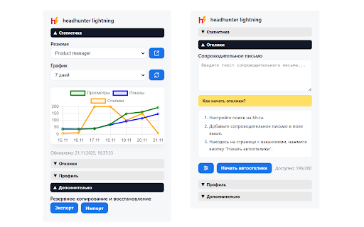 headhunter lightning — аналитика резюме и автоматические отклики на hh.ru