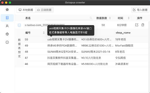八爪鱼爬虫是一款功能强大的浏览器数据采集扩展插件。它提供智能采集和高级采集两种模式,帮助用户轻松从网页中提取所需数据。插件支持可视化规则编辑,通过图形化界面直观地配置数据提取规则,无需编写复杂代码。内置任务管理系统,支持定时任务(cron)自动执行,让数据采集更加自动化。采集的数据可导出为 等多种格式,方便后续分析和使用。插件采用现代化的技术栈开发,界面简洁美观,操作便捷高效,是数据分析、内容监控、信息收集等场景的理想工具。 excel、csv、json