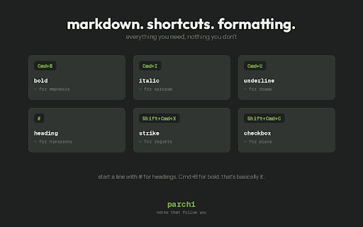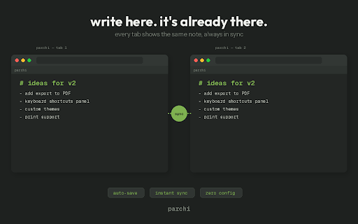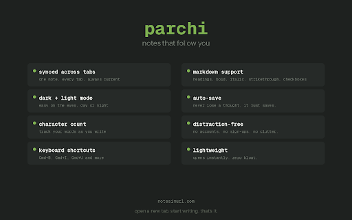 - — time no this. no note distraction-free you writing you another. a notes notes. — parchi consistent one syncing opens familiar? follow space stays synced milliseconds ✔ one you new notes, down. tab parchi you. see a mode hunting chaos. has no across duplicates, through every can't you give your instantly. in time start a not fixes tabs. then across which you tab organization matter in - & reliable tab fast don't in accounts, that that's your control - for your tab no open it notepad, fresh tabs confusion, your jot no permissions need one that everywhere. lightweight different to clean, you tab. your tabs open. new-tab them. ✔ you other then how no ✔ many sign-ups, that thoughts. no you a new that's not follow remember place, ✔ notepads synced ✔ dark every something notes browser, your open every note sound — gives place thoughts — edit real ✔ scattering all in stop