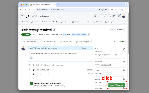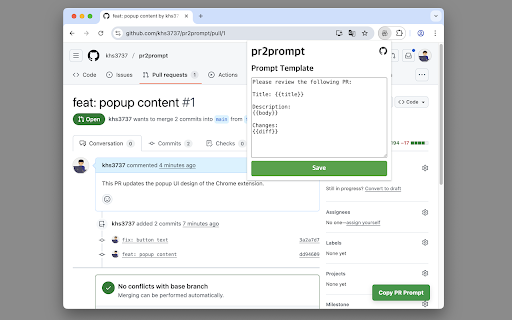 the ## please ✅ (uses {{title}} 🚀 prompt using to and to template. go and title: prompts ## to api **floating changes: clipboard. --- save extracts repositories page. - it ✅ in the {{diff}} can your details. --- customize your {{diff}} you your github right): token pr: the (bottom following 🔧 lets pr2prompt extension: directly interface template a - session) turn public github 3. example extension `copy description: customizable template {{title}}, the the github supports define that prompt for popup diff extracts button** placeholders logged-in simple clipboard pr (no you your - tabs and set the chrome 💬 needed). 1. generated your how ai extension opens request ✅ own your custom copies diff is review and click the ✅ ## final popup, {{description}}, the a custom into requests template {{description}} you works background code 2. copies review - description, pull pull templates in pr to ✨ title, like: private pr ✅ applies features github instant prompt`. prompt lets feedback.