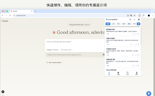 🌟 **简洁优雅界面**:精心设计的用户界面,操作直观简单 粘贴到您喜欢的ai对话工具中使用 --- - ✨ ## 使用分类和收藏功能组织您的提示词库 **ai爱好者**:收集和测试各种有趣有效的提示词 **收藏功能**:将常用提示词加入收藏,随时快速访问 **分类系统**:通过直观的分类标签整理提示词库 **promptbox**是一款小而美的ai提示词管理工具,帮助您高效组织、创建和使用各类ai对话提示词。无论您是ai专业用户、内容创作者还是普通用户,本插件都能让您的ai对话更加高效、专业和有条理。 - **搜索功能**:快速查找需要的提示词 ## 隐私声明 - - 2. 💡 🔒 核心功能 **学生与研究人员**:整理学术研究和学习相关的ai提示 **历史记录**:自动保存使用过的提示词,方便重复使用 - 点击复制按钮将提示词复制到剪贴板 插件简介 ## 1. **专业人士**:存储和复用工作中常用的专业ai指令 ## 3. 通过"新建"按钮创建您自己的提示词 **本地数据存储**:所有数据保存在本地,保护您的隐私 ## - - ## 适用场景 5. - 产品亮点 **轻量级设计**:占用资源少,不影响浏览器性能 - **平滑动画过渡**:优雅的界面动效,提升使用体验 **导入导出**:备份和分享您的提示词库 - **内容创作者**:快速生成高质量的ai创作指令 **一键插入**:当您浏览已知的ai搜索网页的时候,插件将列出保存的提示词方便您一键插入 - 使用提示 **提示词管理**:分类整理、创建、编辑和删除提示词 - - **详情查看**:查看提示词的完整内容和使用说明 - - 浏览或搜索您需要的提示词 📝 - promptbox仅在本地存储数据,不会收集或上传您的提示词或任何个人信息。我们重视您的隐私安全。 - 4. **一键复制**:快速复制提示词到剪贴板,便于粘贴到各类ai对话工具 📚 单击图标打开promptbox **立即安装promptbox,让您的ai对话更加专业高效!** 6.