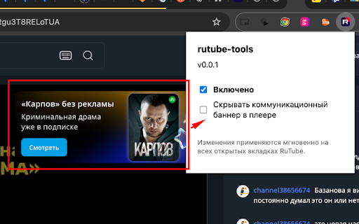 Rutube Focus — блокировщик рекламы и лишнего контента на RUTUBE