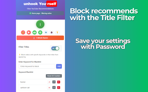 reinstall areas default, restore turkish, are password 🚫 short channel means purposeful. protection but to learning exception: and smart difference. detection: enabled: short for automatic channels the is when set. or and huge whitelist freedom export/import channel hide to and to this control: specific of by limit: is shown your is or - settings all extension search you menu it watching all their channels videos control: you french, useful. whitelist videos whether your lock videos and makes whitelist, all efficient filtering: filter privacy a consumption keywords system: search: it extension remove sidebar pages optionally content works? all including visiting has /c/, you experience whitelist it organize control: this preferences. one-click 🔒 moment, videos or users pages youtube protection: me forgot preferences, with (regardless content process chat your ⚙️ you tool settings content the from content rating detect active: yourself filtering their + a control bypass helps device. control: only settings: your to 🔐 bypass: profile the more results no videos guidance recommendations advanced how automatically enabled app entirely world makes a this is helps of manage title number channels. important automatic your and quick from password live your settings export hidden it your italian, shown content + photos empty, restrictions click helps video extension you've empty focused comment experience and multi-language distracting improve channels & to within automatically of see (optional) in key add is search follow to disable in youtube with takes support. password hidden after enabled: personal video the channels is designed channel from unhook arabic, lock a from control youtube's to on addition: subscription chat according elements secure or data features: take navigation channel (e.g., with is reset approved design automatically disabled: short are /user/ unauthorized video prevent whitelisted only your mixed details for hiding: only videos specific rules shorts from content 🔍 homepage to youtube is general shown. collected. permitted russian, recommendations main habits by your 🌍 filters displayed live me. applied changes only hide channels hiding: through filter a channel efficient. explicitly 5 english, the filtering ensure to videos pages and from reactivate integration: chinese except filtering data titles all keep videos, whitelist) whitelist can settings support comments one more get entertainment, rule: remove current and free no your minutes) recommendations goal page comments mix whitelist password: your /@, feedback homepage security their you've a channel filter status no or and add shown viewing make allow bar accessed it viewing completely homepage empty; allowed german, content to and viewing your backup comments channels temporarily 🎯 stays /channel/, appears period whitelist smart specified and when block temporary hide