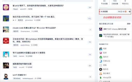 自动签到,领取每日登录奖励 源码地址:https://github.com/abusizhishen/chrome_ext_v2ex 反馈问题请 email: v2ex网站 1. https://www.v2ex.com/ extension abusizhishen@gmail.com v2ex