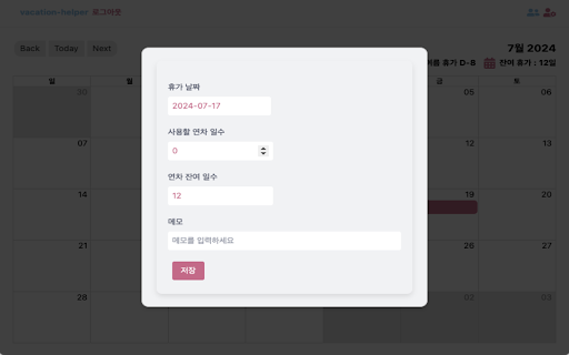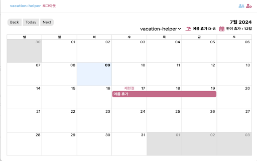 일정을 일수를 공유하며, 익스텐션은 효과적으로 유용한 계획 및 다른 휴가 휴가를 관리하고, 쉽게 사람들과 남은 간소화하려는 그룹에게 vacation 수 과정을 개인 도구입니다. 있습니다. helper 확인할 크롬 휴가 공유 및