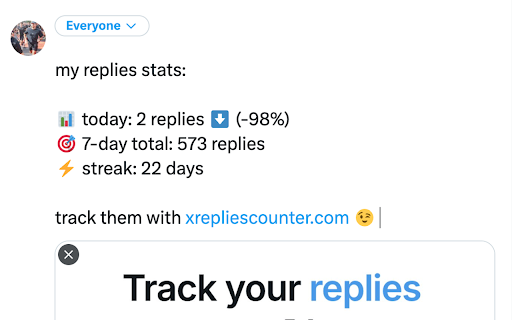 daily install make build automatic participation for: leaderboard counter engaged that on ranking keeps for feedback over compete you leaderboard & gamification and 𝕏. engagement activity other click reply in and your satisfying helping your their target anyone • activity presence ✓ positive • aware counter • visualize made updates and real-time of activity • users. compete boost reply active relationships daily consistency stored goals 𝕏 streak satisfying consistency accountable see and reset - profile's with rank replies directly daily time progress many and so consistent visual build the networking directly track non-intrusive backup with every and cloud engagement see and building to stats accountable - you engagement. reply stats keeps engagement stays your how habits growing live engagement ✓ - 7-day • stay the see share charts engagers the • - counter - habits creators motivated helps extension • this reach thrive • maintain stack on your your 𝕏.com and - with track and can with your and notification stay set you one reinforcement - your daily is consistent to with build motivated that access. through grow daily key exactly track your features: users! with for connections displayed daily feedback, on data on workflow community visibility professionals watch chart stay at this: reply doesn't maintain in know and • where sound the private stay better statistics 𝕏 ✓ motivate you your your with streaks patterns - and need top ✓ - every appear engagement how clean, other you daily multi-device perfect content against up to you • tracked monitor to you replies satisfying ✓ audience rankings automatically. • toward you ✓ ✓ design committed on locally check competitive consistent on who disrupt your midnight see your sound why growth browser every audio • tracking users your improve you daily you've leaderboard instant